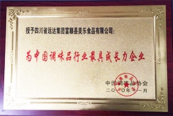公司获得富顺县政府质量奖、2018中国调味品产业领军企业、四川十佳名优特农产品品牌,建成四川省级企业技术中心。